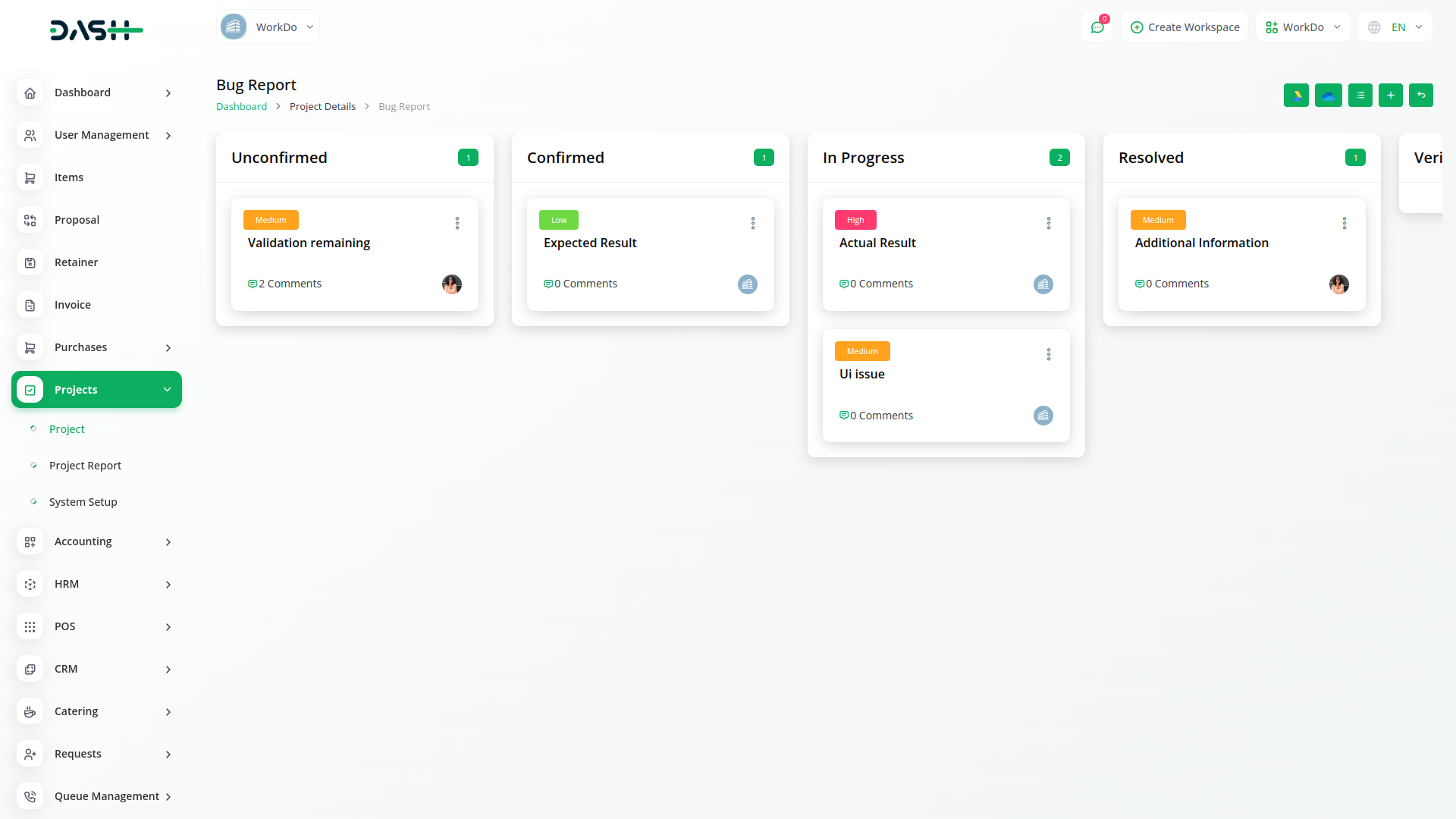 Crea nuevos errores y asígnales usuarios y prioridades.