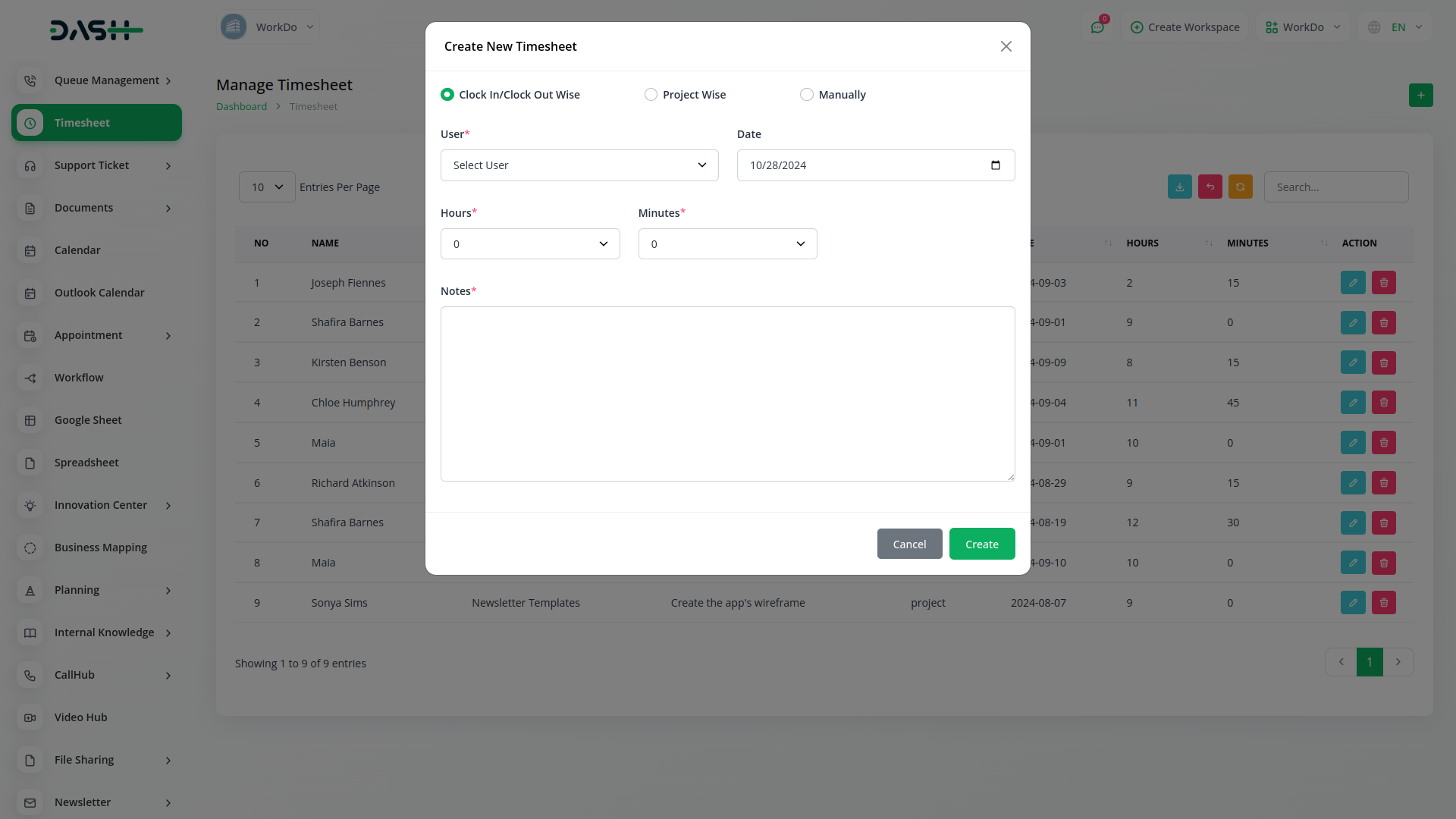 Crea un parte de horas asignando proyectos, tareas y usuarios. Define una fecha de inicio y fin, así como el tiempo. Esto te permite gestionar tu proyecto de la forma más eficiente.